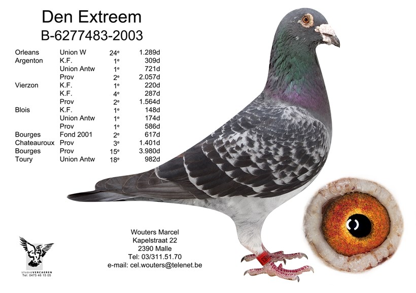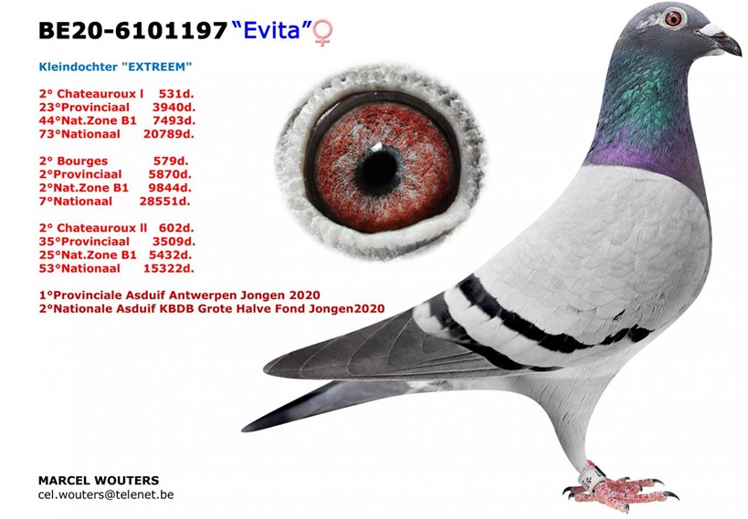 Brother "EVITA" 2. National ace pigeon KBDB Great Middle Distance Youngsters 2020 X grand daughter "DEN AD" 1. National ace pigeon KBDB with daughter "EXTREEM" !