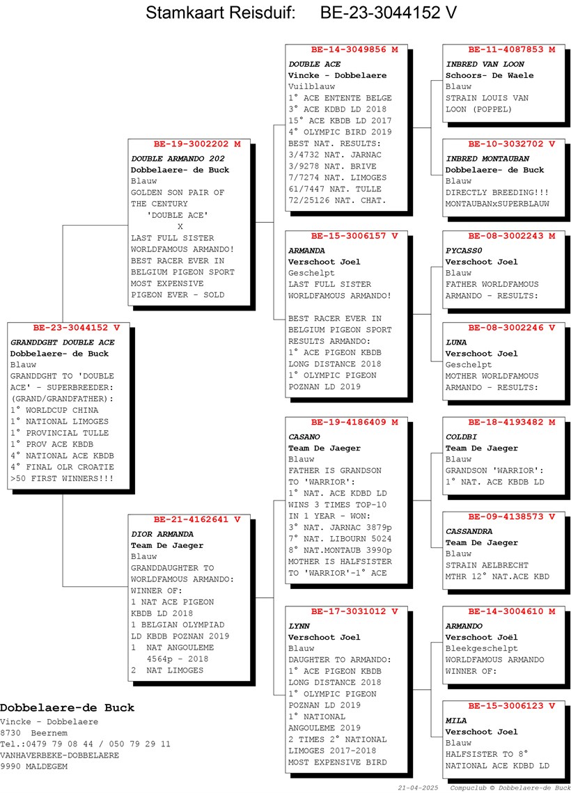 Son "Double Ace" with full sister famous "Armando" Joel Verschoot X "Dior Aramda" grand daughter famous "Armando" Joel Verschoot !