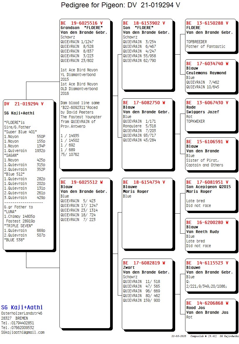 Züchter: SG Kaji & Aathi Germany 卡吉&阿蒂联合鸽舍