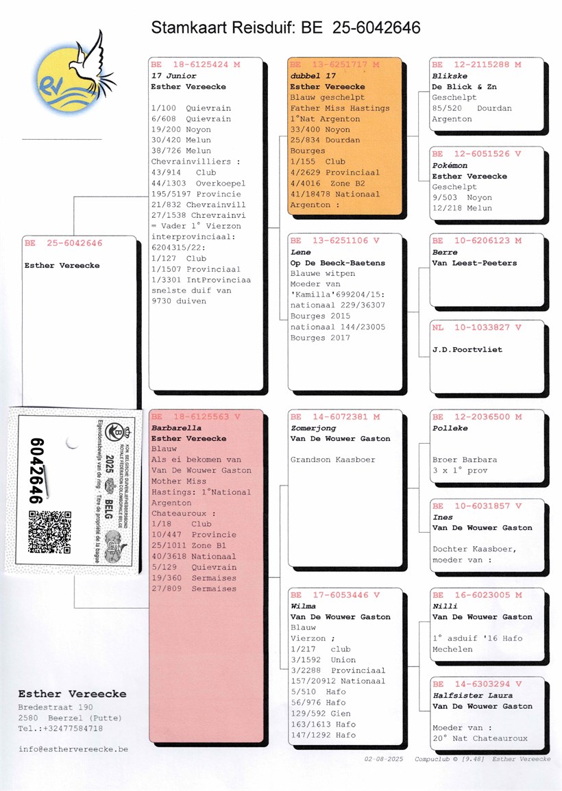 Half siter "Miss Hastings" 1. National Argenton (545 km) vs. 11.295 pigeons ! 【“哈斯廷斯小姐”(亚精顿国家赛545公里11295羽冠军)半姐妹】