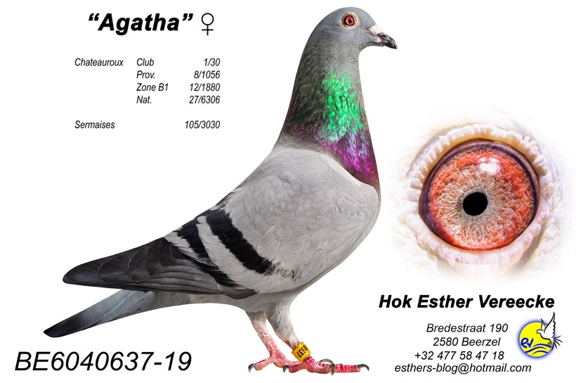 "Mister Marple" full brother "Miss Jane Marple" X "Agatha" won 27.National Chateauroux vs. 6.306 pigeons !