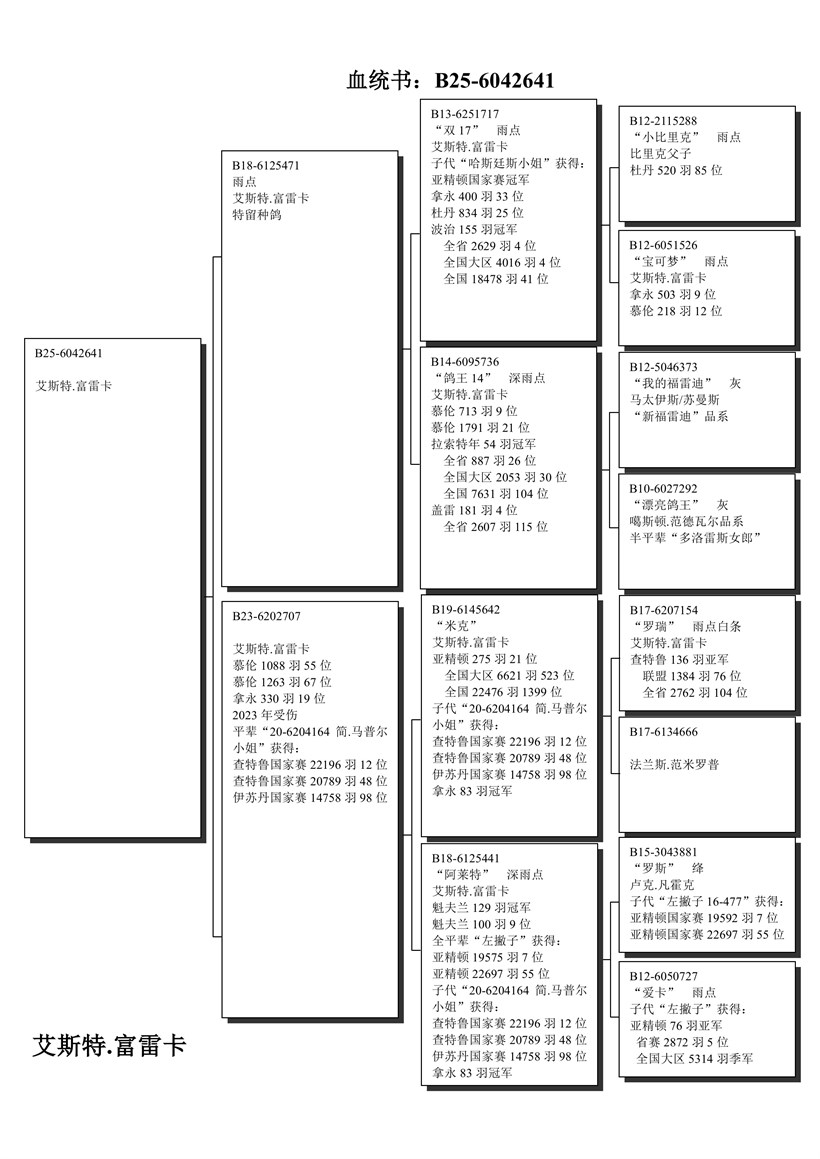 Half brother "Miss Hastings" 1. National Argenton (545 km) vs. 11.295 pigeons X sister "Miss Jane Marple" daughter of "Mirco" with "Arlette" sister super hen "Lefty" ! 【“哈斯廷斯小姐”(亚精顿国家赛545公里11295羽冠军)半兄弟 X “简.马普尔小姐”(查特鲁国家赛22196羽12位、查特鲁国家赛20789羽48位)全姐妹】
