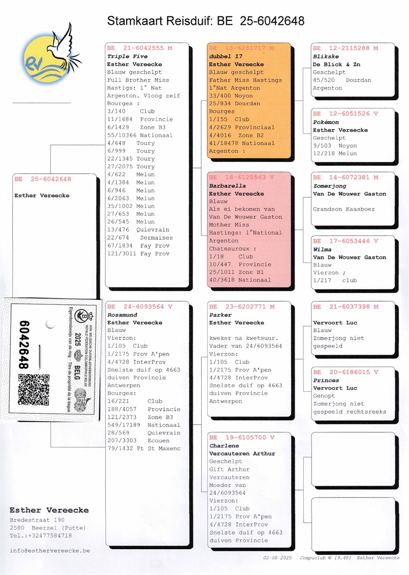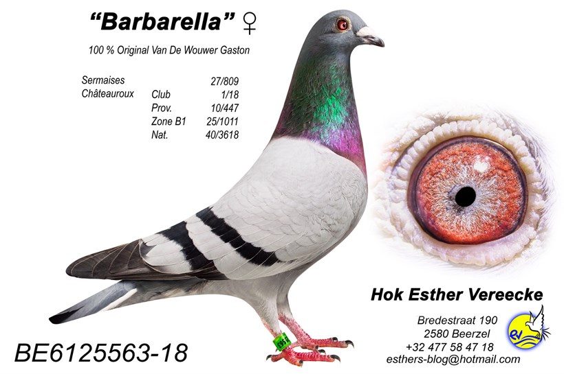 Ace cock "Triple Five" full brother "Miss Hastings" 1. National Argenton (545 km) vs. 11.295 pigeons X "Rosamund" 1. Provincial Vierzon (465 km) fastest vs. 4.663 pigeons !