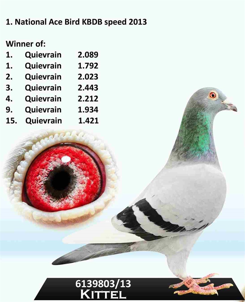 Super inbreed "Son Kittel" x "Daughter Kittel" 1. National ace pigeon KBDB Speed Dirk Van Den Bulck X daughter super hen "Ace 957" !