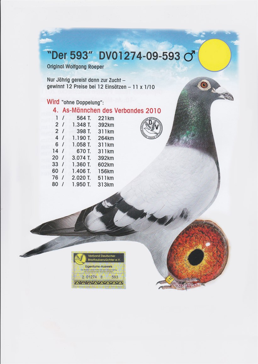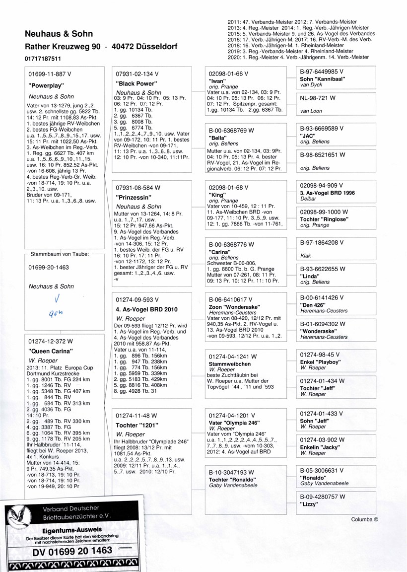 "Powerplay" son super breeder "Black Power" with "Prinzessin" X "Queen Carina" daughter 4. National ace cock Germany with half sister "Olympic 246" Orig. Wolfgang Roeper ! 【“权力游戏”(“黑劲力”ד公主号”)X“卡丽娜女王”(全国鸽王4位ד奥林匹克246”半姐妹)】