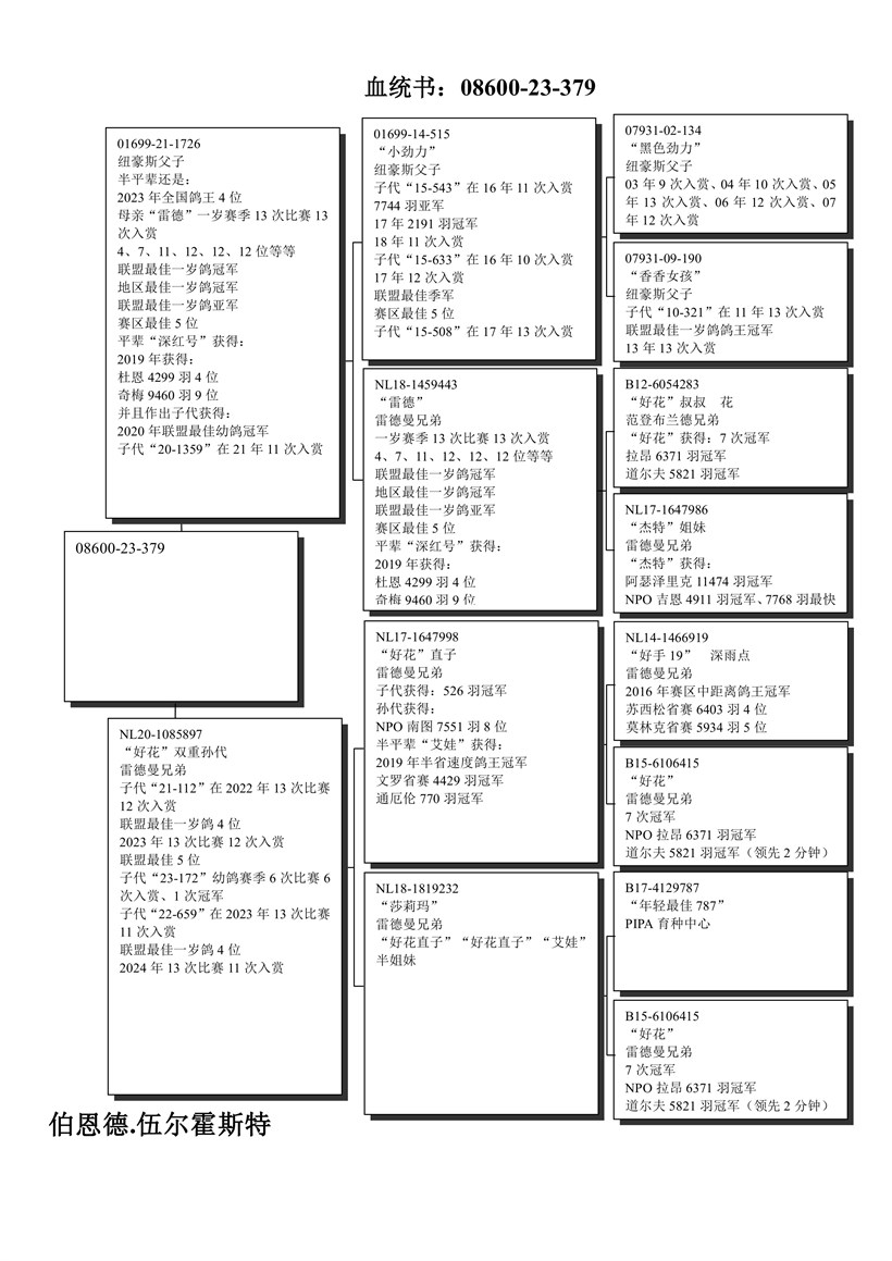 Half brother 4. National ace hen Germany from "Little Power" with super hen "Leide" 1. Provincial ace hen Yearlings X "Grizzle" from son "Crack 19" with doughter "Goed Grijs" 7 x 1. prize ! 【“全国鸽王4位”半兄弟(“小劲力”×联盟一岁鸽鸽王冠军“雷德”)X“好花”双重回血孙代】