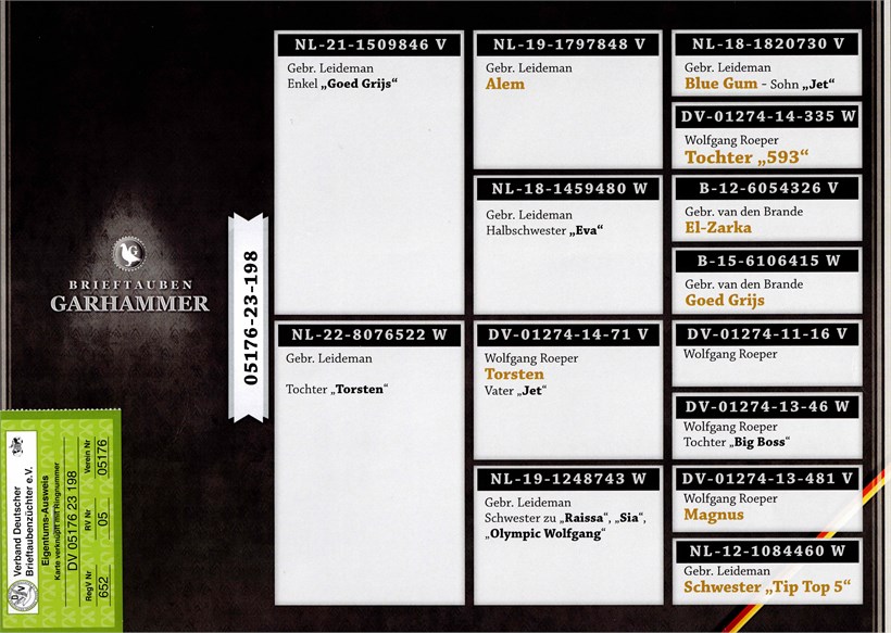 Züchter: Garhammer Brieftauben 加哈默鸽舍