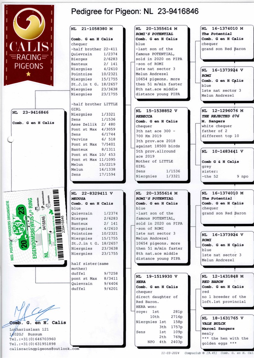 Family breeding ! Son "Romi's Potential" with "Rebecca" X "Medusa" daughter "Romi's Potential" with "Hera" ("Red Baron" x "Vale Bulck") !