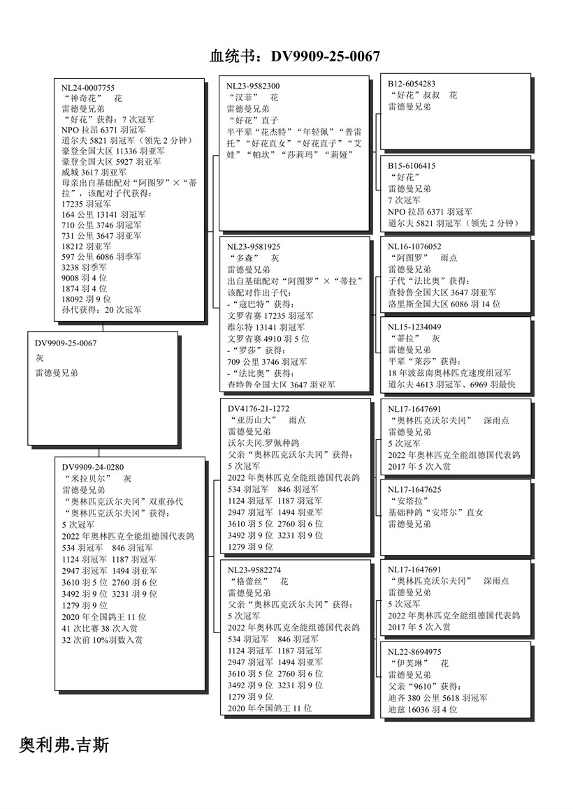 "Wonder Grijs" grandson "Uncle Goed Grijs"/"Goed Grijs"/"Arturo"/"TILA" X double grand daughter "Olympic Wolfgang" won 5 x 1. prize ! 【“神奇花”(4羽铭鸽“好花叔叔”“好花”“阿图罗”“蒂拉”)孙代 X “奥林匹克沃尔夫冈”(5次冠军、奥林匹克全能组代表鸽)双重回血孙代】