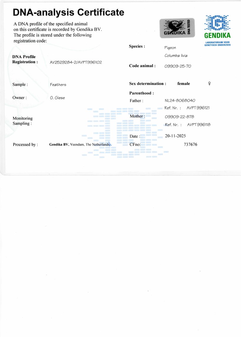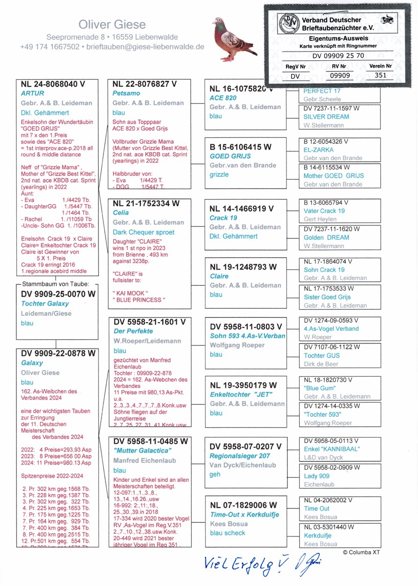 "Arthur" grand son "Ace 820"/"Goed Grijs"/"crack 19" X super hen "Galaxy" won 2.,3.,3.,4.,7.,7.,7.,8. prize !