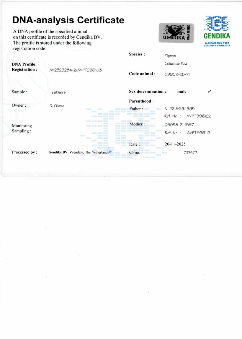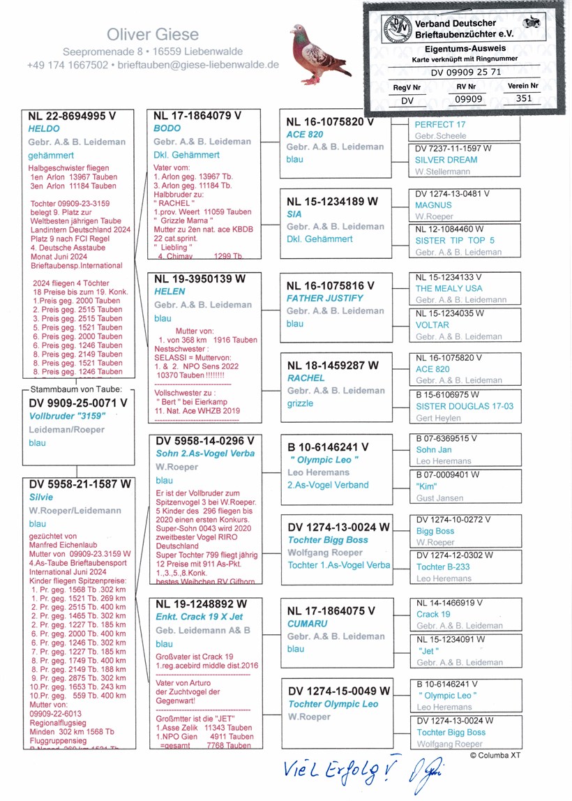 Full brother 4. National ace Germany "Brieftaubensport International" June 2024 ! Super breeding pair "Heldo" x "Silvie" !