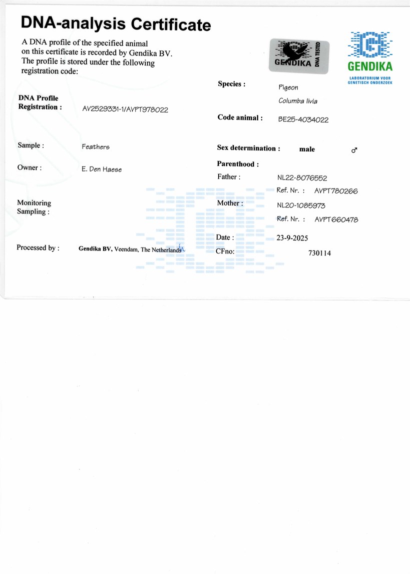 Ringnummer: B25-4034022 with DNA