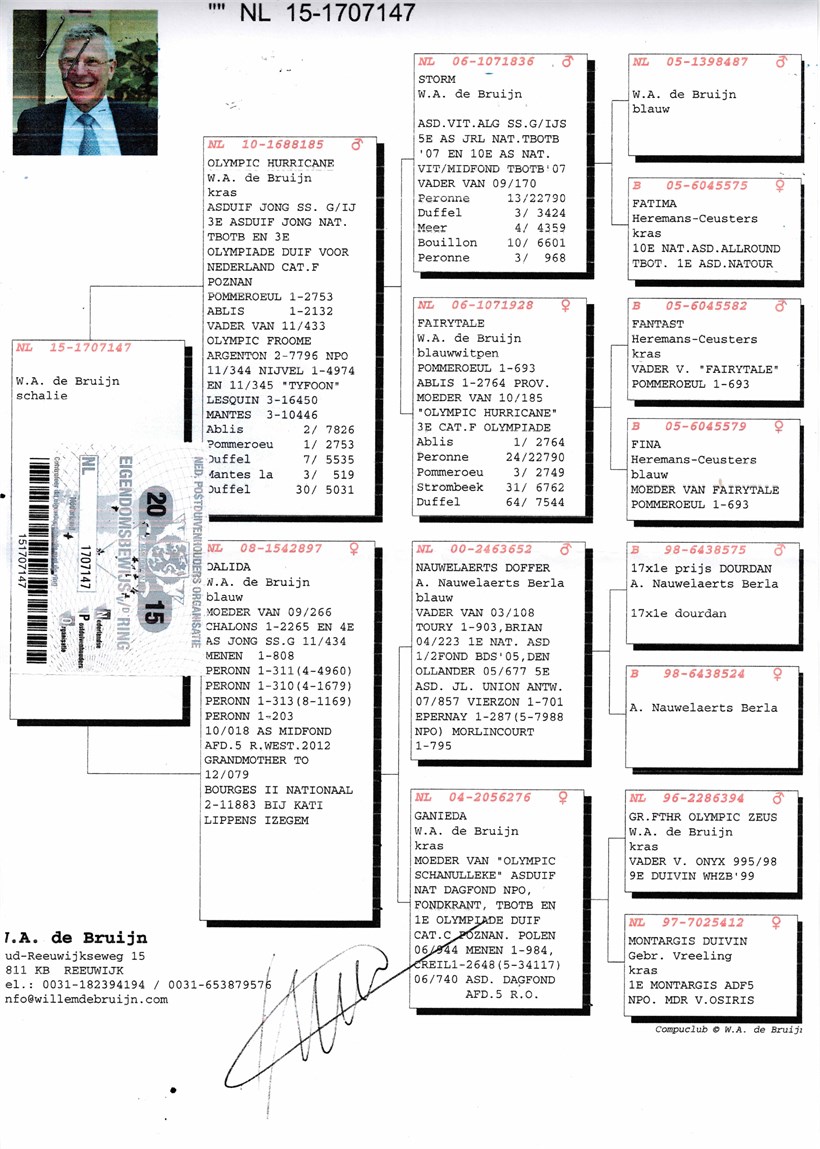 Family breeding ! Grandson famous "Olympic Hurricane" X grand daughter famous "Olympic Hurricane" Willem De Bruijn !
