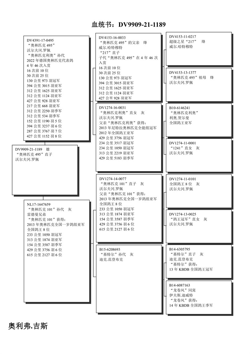 "Olympic 495" Olympic Ace Pigeon Germany 2022 (grandson "Olympic Leo") X grand daughter "Olympic 101" Olympic Ace Pigeon Germany Yearlings & 8. National Ace cock Germany ! 【2022年德国奥林匹克代表鸽“奥林匹克495”(“奥林匹克利奥”孙代)X“奥林匹克101”(2013年奥林匹克全国一岁鸽组亚军、全国鸽王8位)孙代】