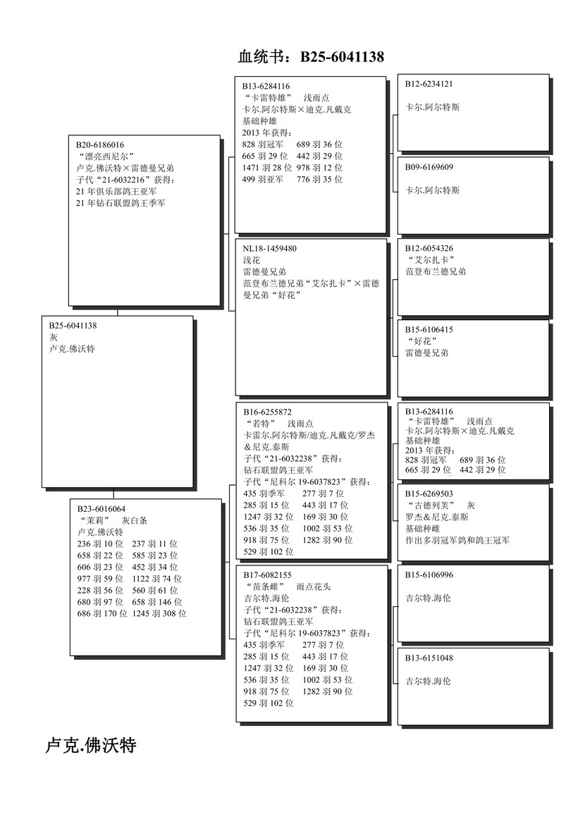 Beauty Senior" son "Kareltje" with "Licht Grijze" daughter inbreed "EL ZARKA" with "Goed Grijs" 7 x 1. prize Gebr. Leideman X "Molly" daughter "De Zot" with super breeding hen "Veul Gert Heylen"! 【“漂亮西尼尔”(超级种鸽“卡雷特雄”ד艾尔扎克”“好花”的直女)X“茉莉”(“若特”ד苗条雌”)】