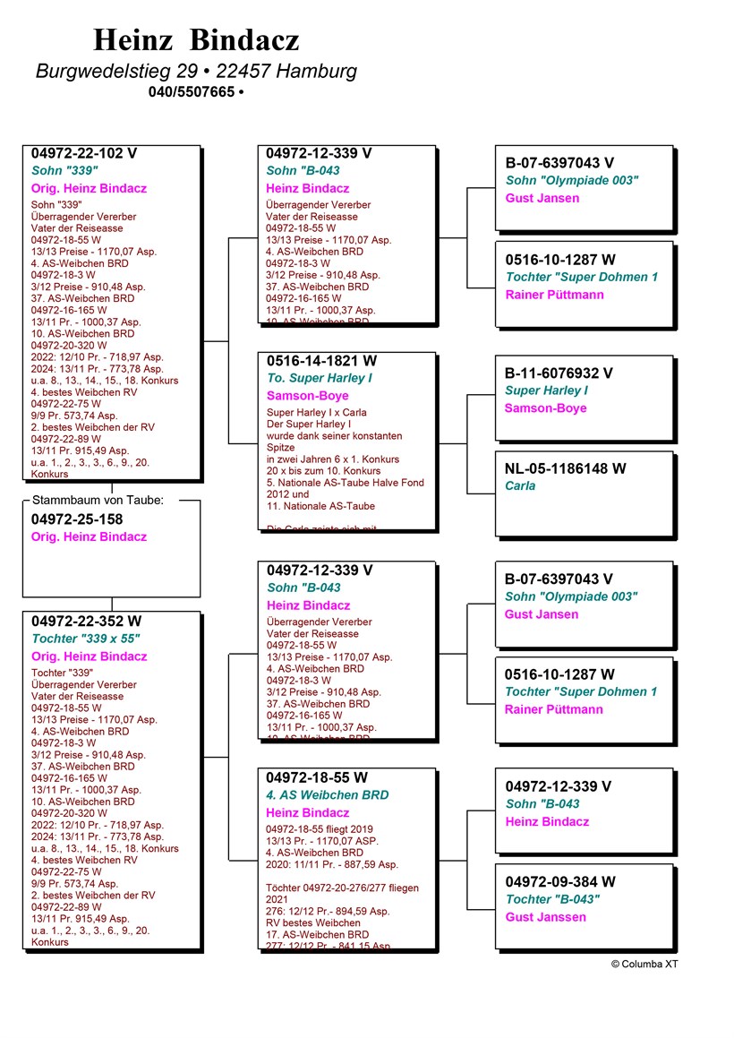 Half brother 4. National ace hen Germany 2020 X daughter 4. National ace hen Germany 2020 inbreed "Olympic 003" Leo Heremans