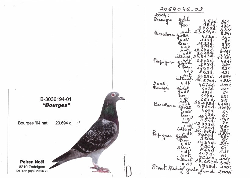 Half brother 8. National ace pigeon Long Distance KBDB ! Son "Darco 17" X daughter "Tarbes" with "Barcelona Duivin" !