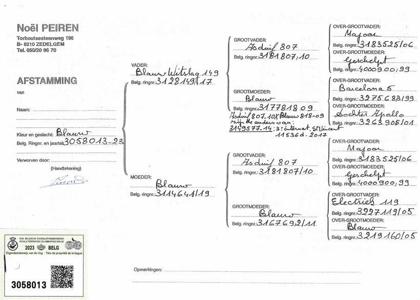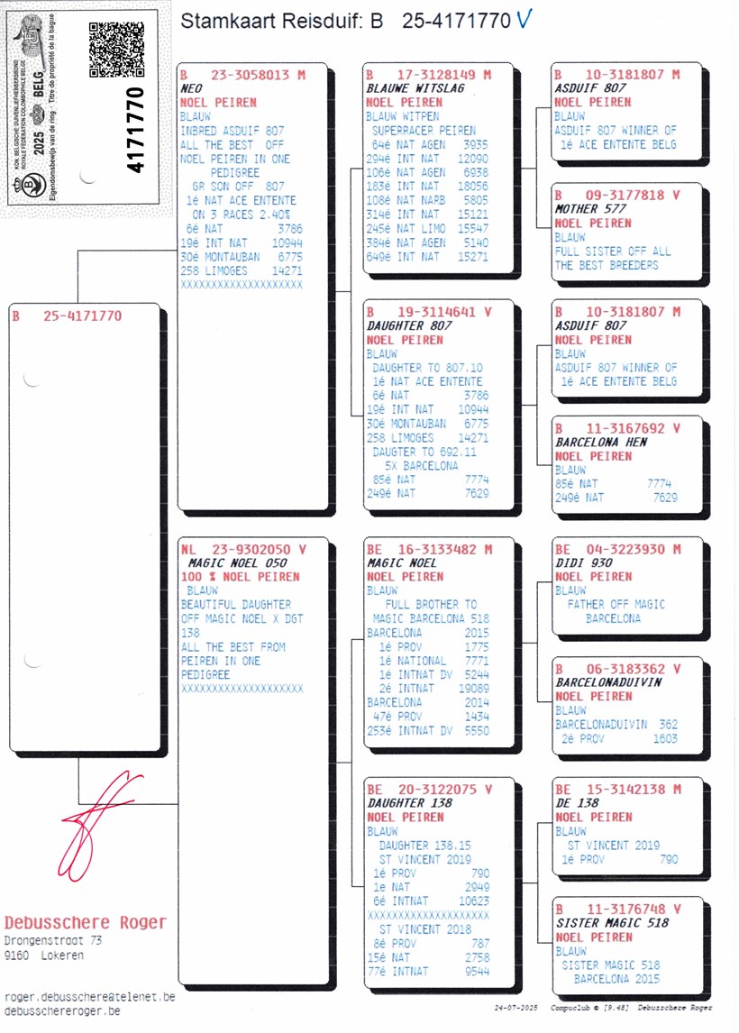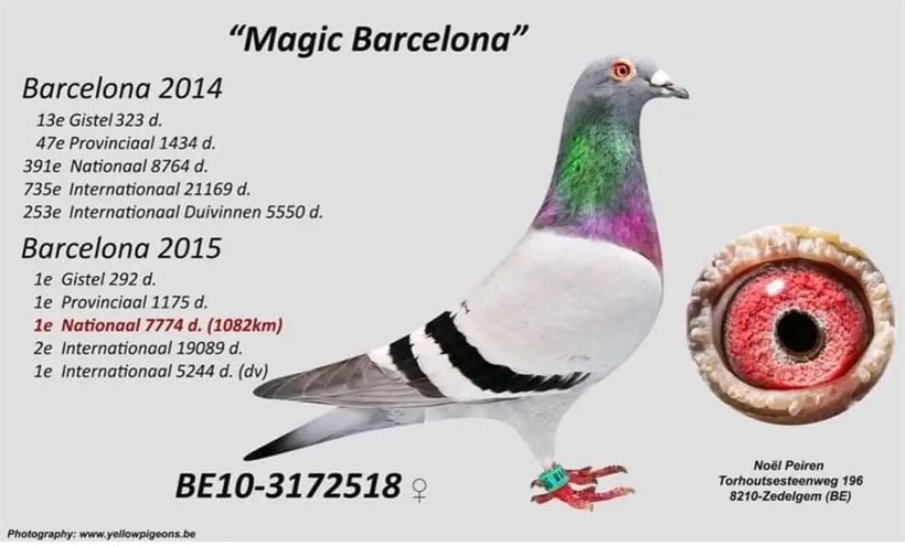Inbreed ! "NEO" double grandson "Asduif 807" X daughter "Magic Noel" full brother 1. National Barcelona vs. 7.771 pigeons !