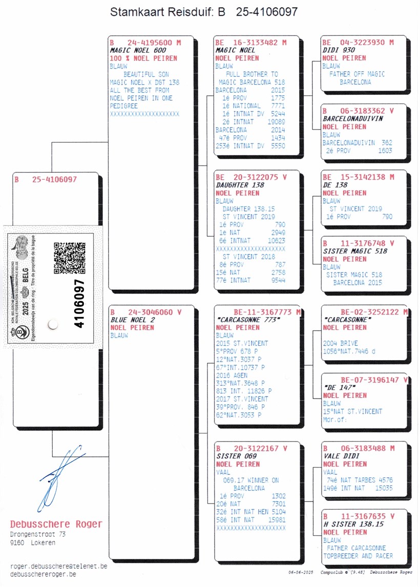 Magic Noel 600" son full brother "Magic Barcelona" 1. National Barcelona vs. 7.771 pigeons X grand daughter "Carcasonne" !