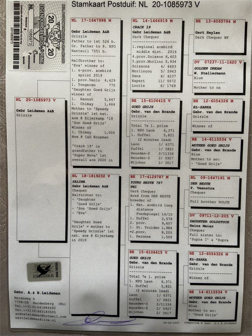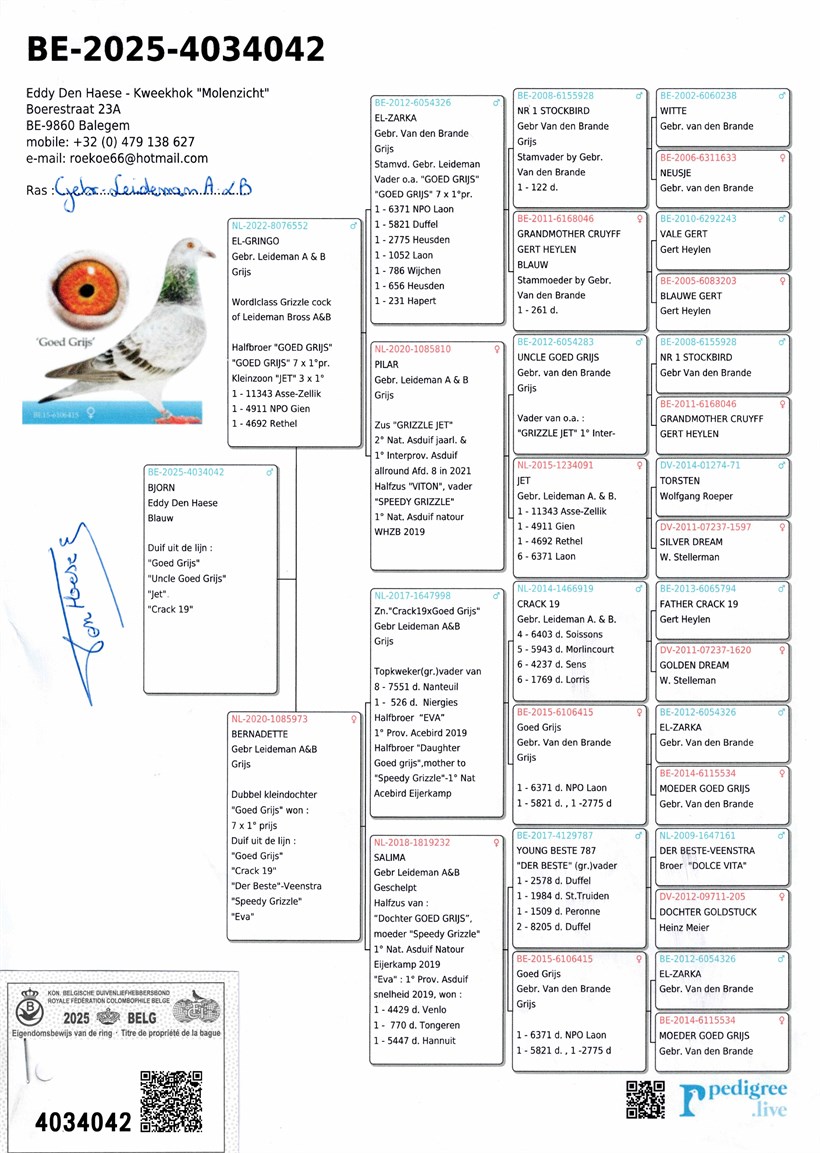 Inbreed "Goed Grijs" won 7 x 1. prize ! Half brother "Goed Grijs" ("El Zarka" with daughter "Uncle Goed Grijs") X "Bernadette" double grand daughter "Goed Grijs" won 7 x 1. prize !