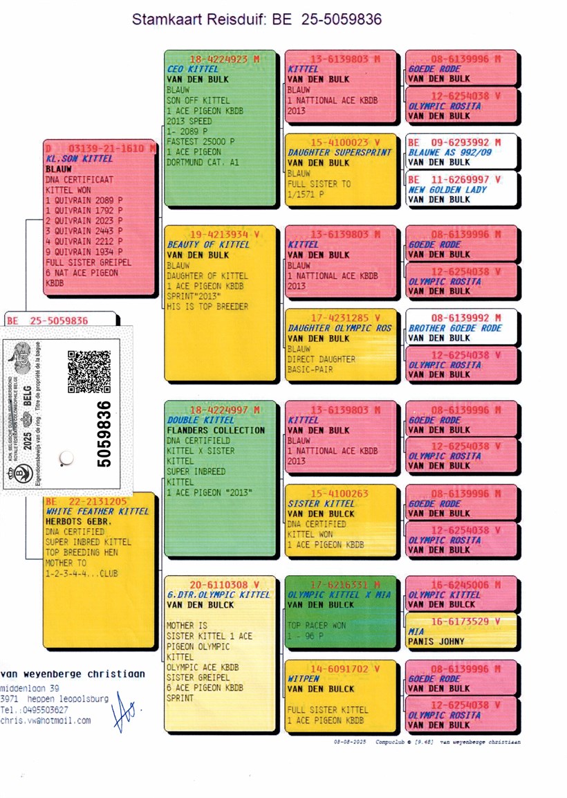 Total inbreed "Kittel" 1. National ace pigeon KBDB Speed 2013 !