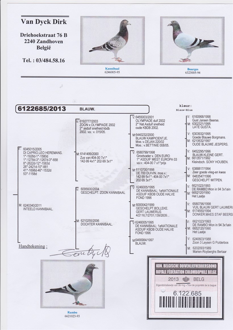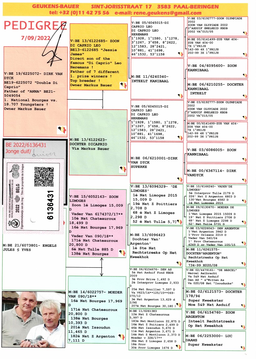 "Double Di Caprio" father "Anna" 1. National Bourges vs. 18.707 youngsters X grand daughter  "De Limoges" 1. National vs. 15.009 pigeons !