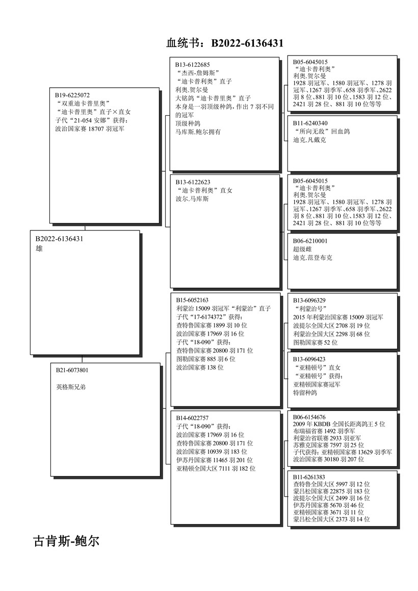 "Double Di Caprio" father "Anna" 1. National Bourges vs. 18.707 youngsters X grand daughter "De Limoges" 1. National vs. 15.009 pigeons ! 【“双重迪卡普里奥”(子代“安娜”获得:波治国家赛18707羽冠军)X“利盟治号”(利蒙治国家赛15009羽冠军)孙代】