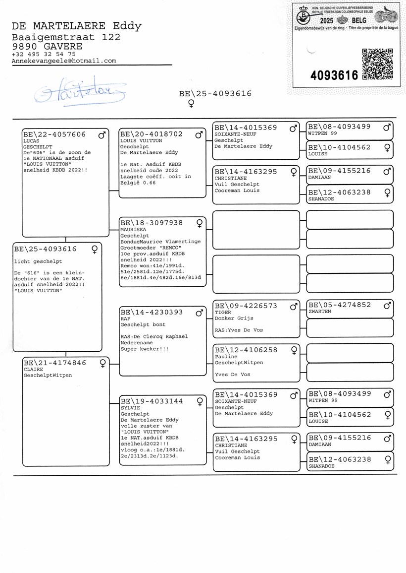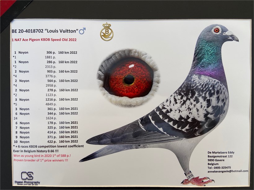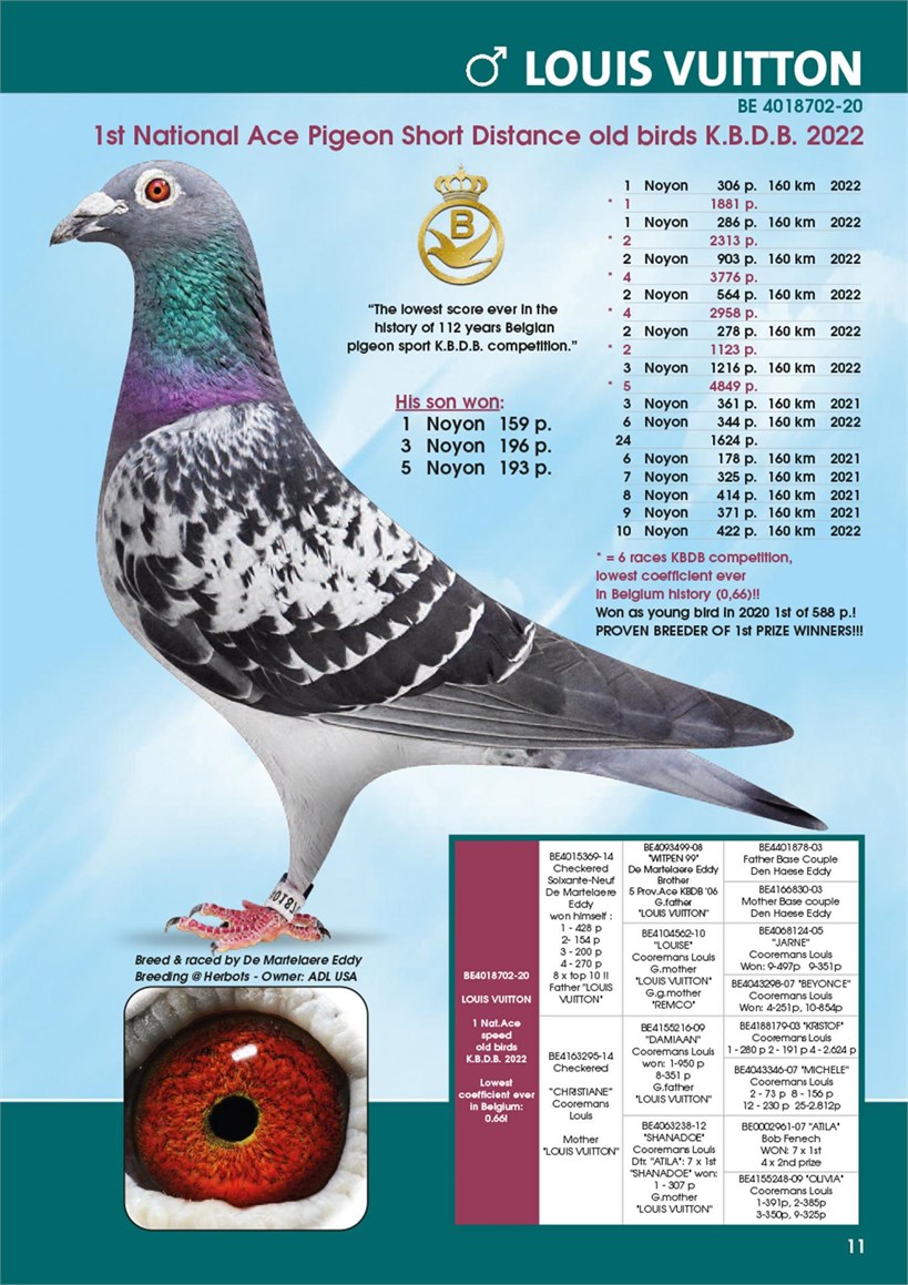 Son "Louis Vuitton" 1. National Ace pigeon KBDB Speed Old Birds X daughter of sister "Louis Vuitton" 1. National ace pigeon KBDB Speed Old Birds !