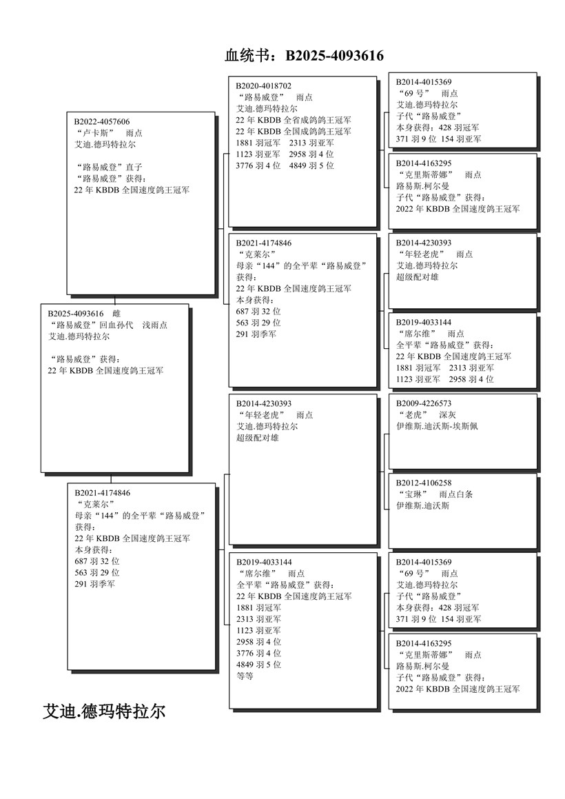 Son "Louis Vuitton" 1. National Ace pigeon KBDB Speed Old Birds X daughter of sister "Louis Vuitton" 1. National ace pigeon KBDB Speed Old Birds ! 【“路易威登”(22年KBDB全国速度鸽王冠军)直子X“路易威登”全姐妹的直女】