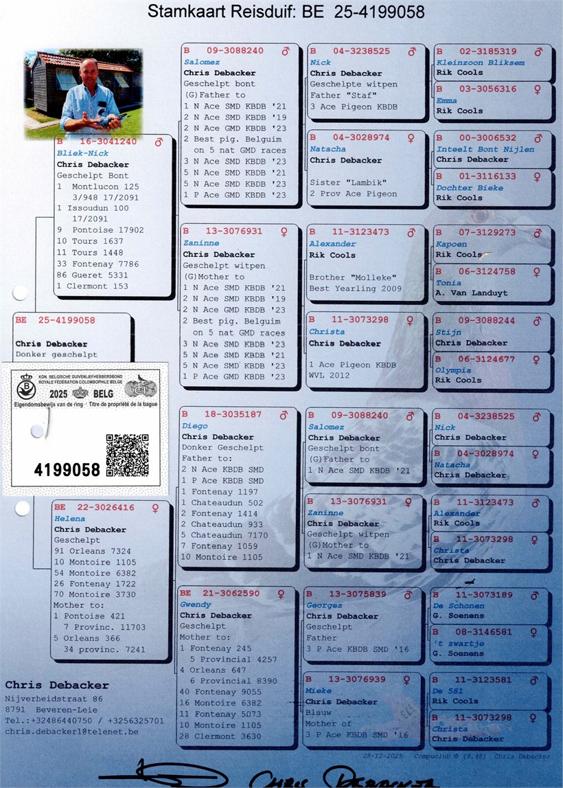 Family breeding ! Super "Bliek-Nick" son key pair "Salomez" with "Zaninne" X "Helena" daughter "Diego" ("Salomez" with "Zaninne") with "Gwendy" !