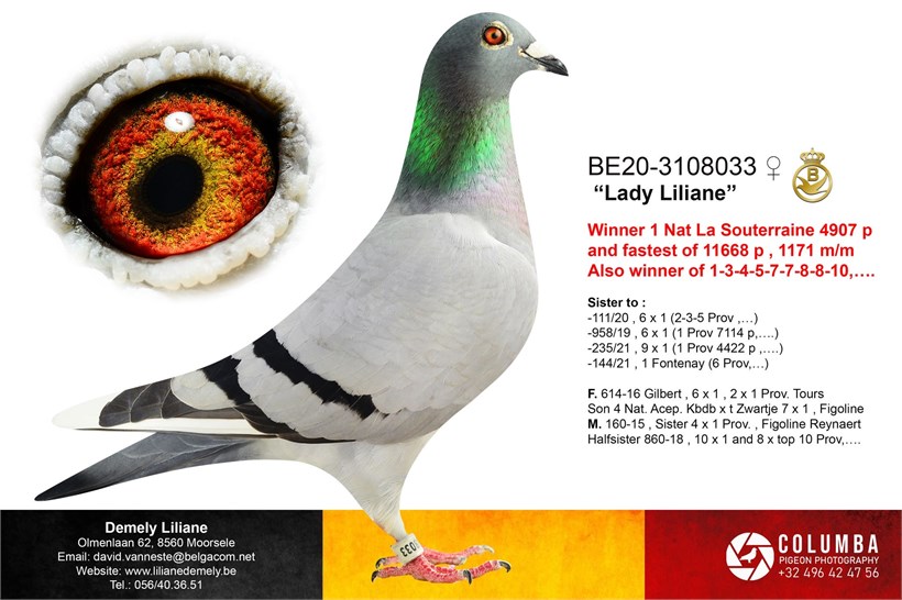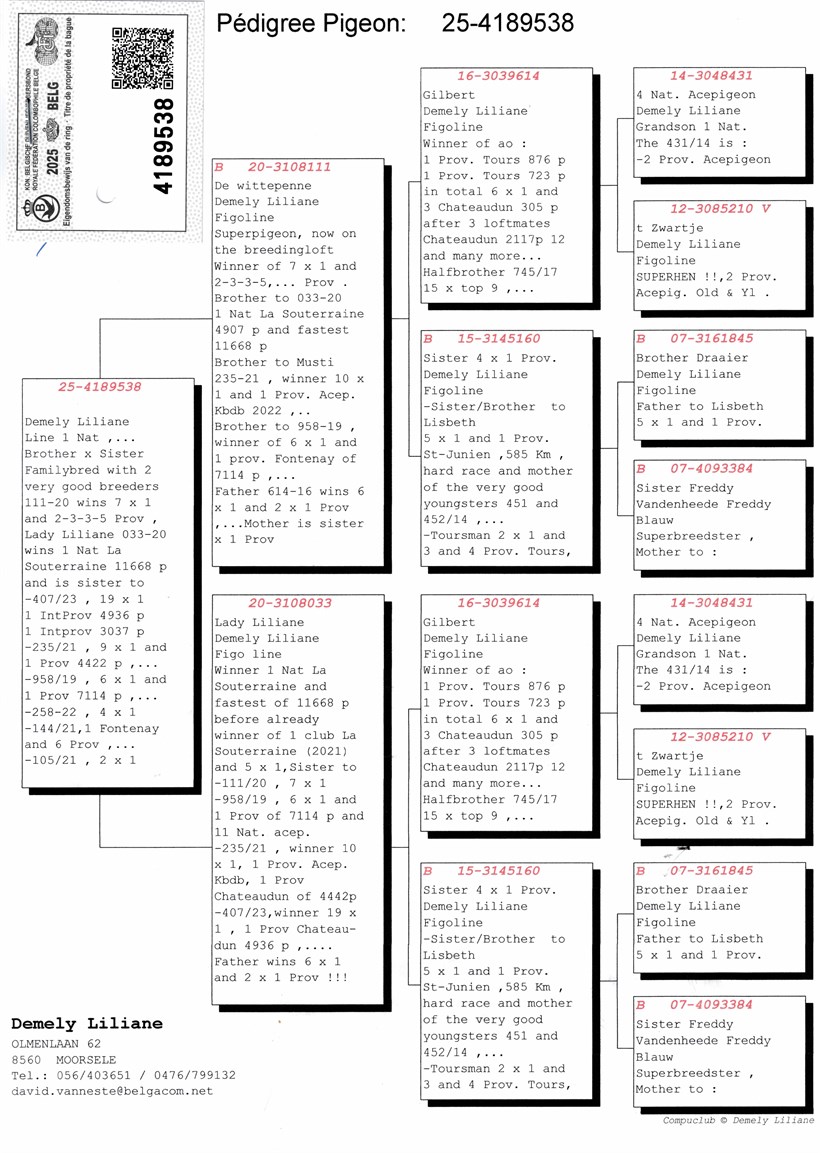 Total inbreed !  "De Wittepenne" won 7 x 1. prize ("Gilbert" x "Sister 4 x 1.Provincial) X "Lady Liliane" 1. National La Souterraine vs. 11.668 pigeons daughter "Gilbert" x "Sister 4 x 1. Provincial"!