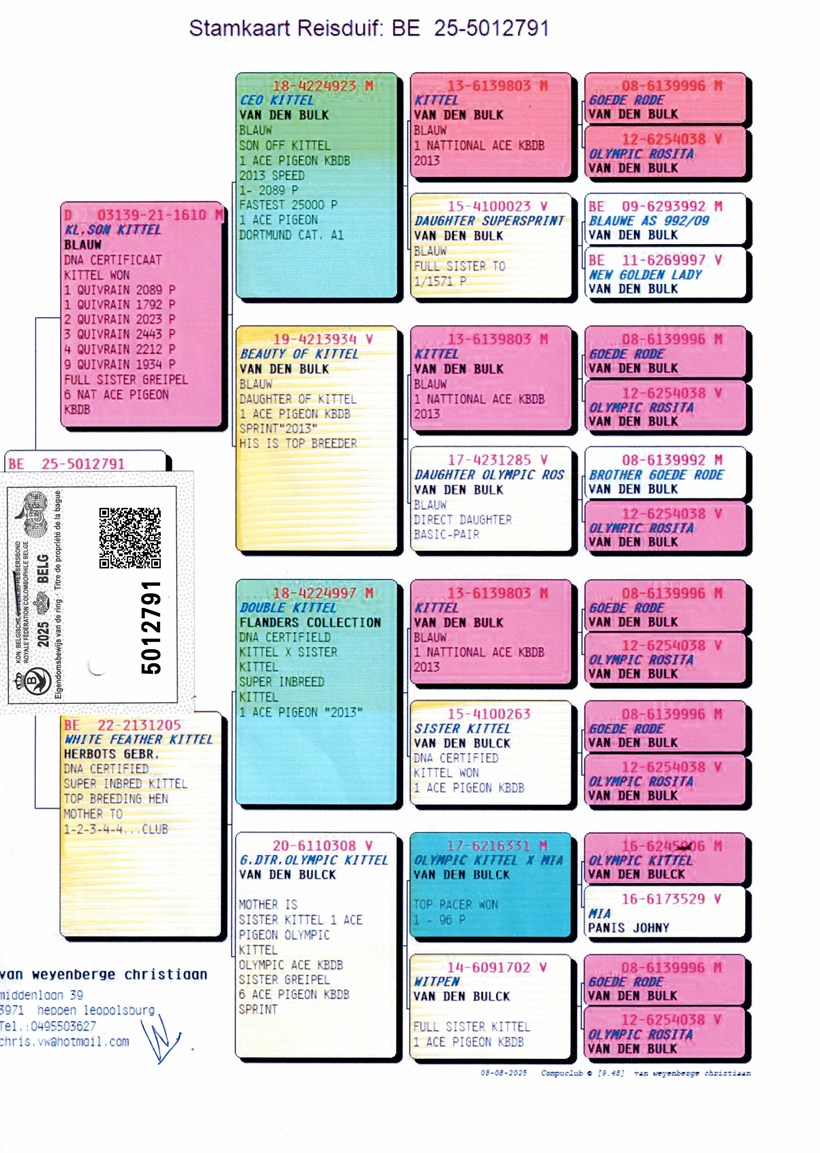 Total inbreed "Kittel" 1. National ace pigeon KBDB Speed Dirk Van Den Bulck !