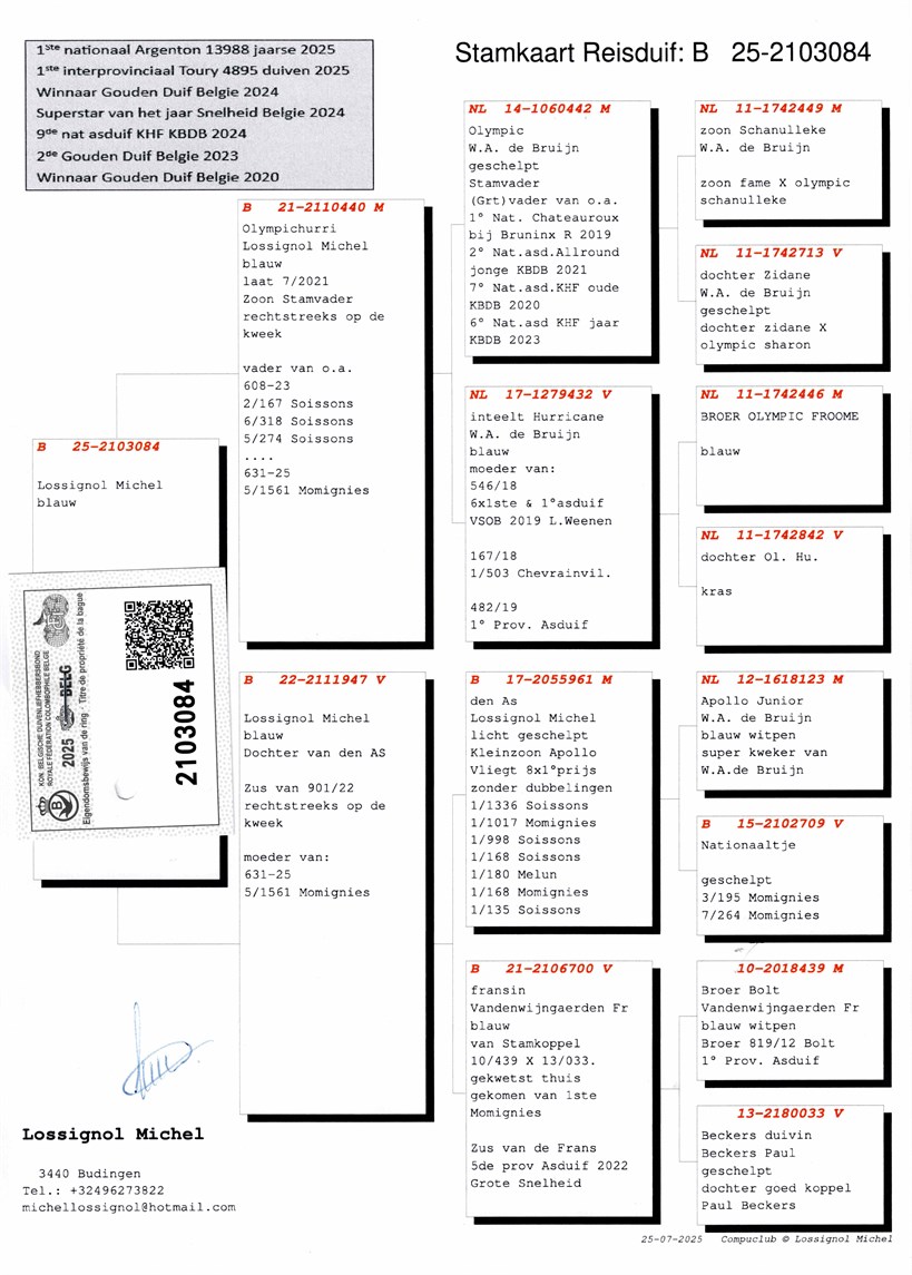 Son super breeder "Olympic" with inbreed "Hurricane" X daughter "Den AS" won 8 x 1. prize ! Grandson "Apollo" Willem De Bruijn !