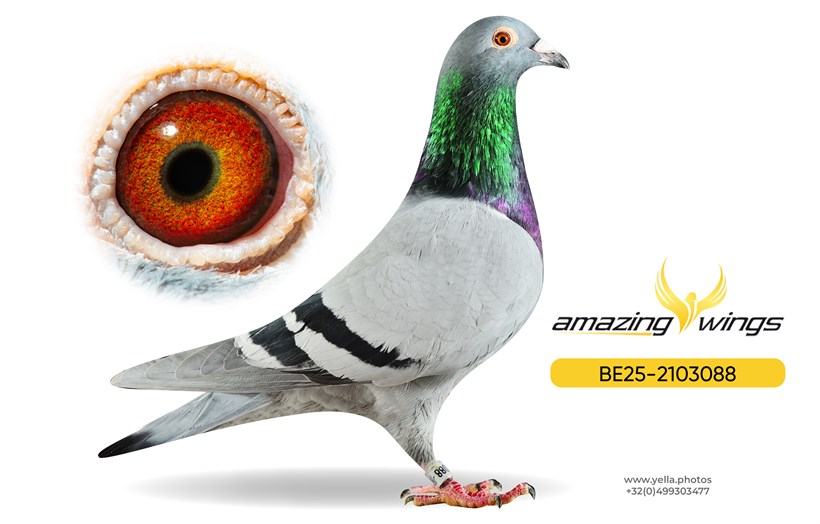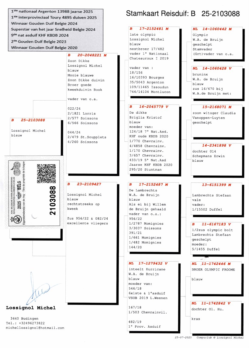 Son "Late Olympic" with super breeding hen "De Dikke" X half sister 6.National ace pigeon KBDB Speed Old Birds ! "De Lambrechts" with "Inbreed Hurricane"!