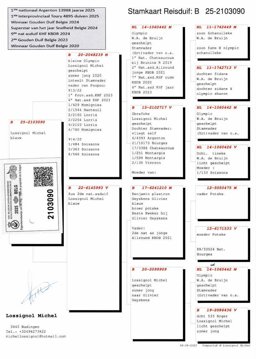 Inbreed super breeder "Olympic" ! "Kleine Olympic" son "Olympic" with daughter "Olympic" X grand daughter super breeder "Olympic" Willem De Bruijn !