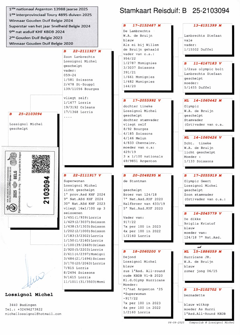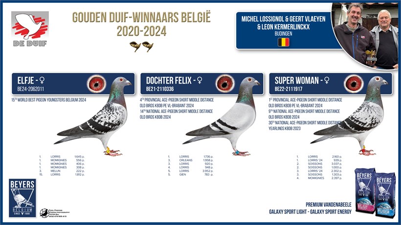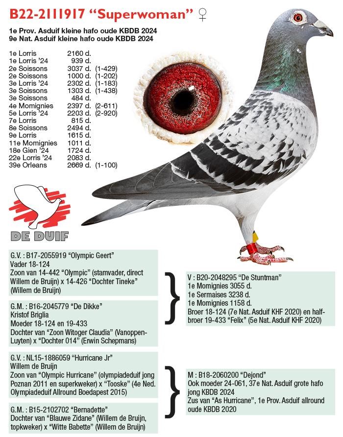 Grandson super breeder "Olympic " X "Superwoman" 1. Provincial ace pigeon KBDB Small Middle Distance & 9. National ace pigeon KBDB Small Middle Distance 2024 !