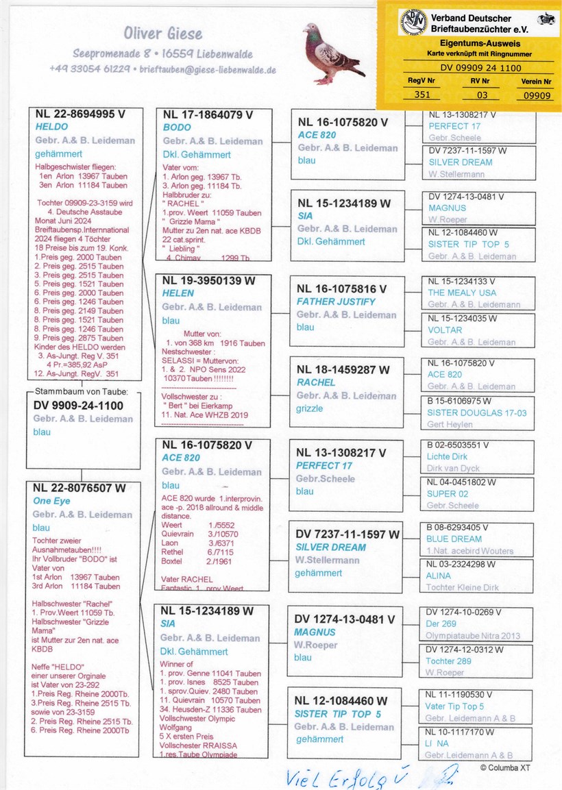 Inbreed "Ace 820" ! "Heldo" grandson "Ace 820" X "One Eye" daughter "Ace 820" Orig. Leideman Brothers !