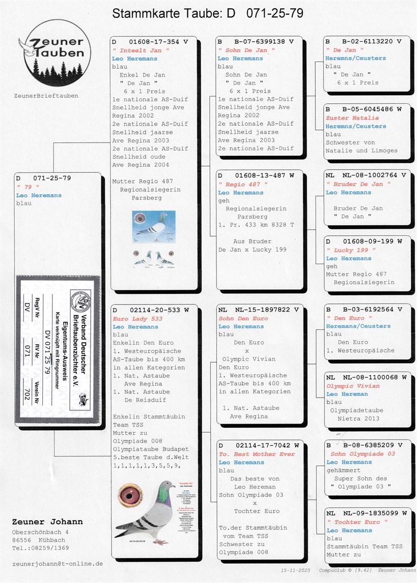 Inbreed "De Jan" 6 x 1. prize Leo Heremans X inbreed "Olympic 003" Leo Heremans !