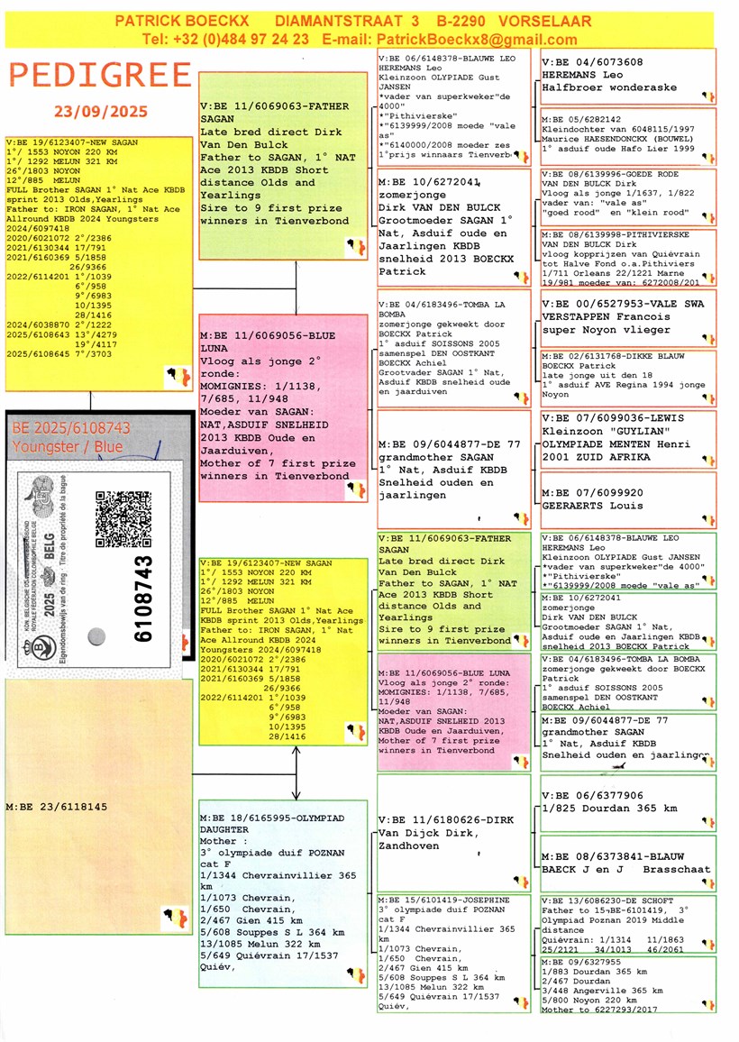 Inbreed ! "New Sagan" full brother "Sagan" 1. National ace pigeon KBDB Speed father of "IRON SAGAN" 1. National ace pigeon KBDB Allround X daughter super breeder "New Sagan" !