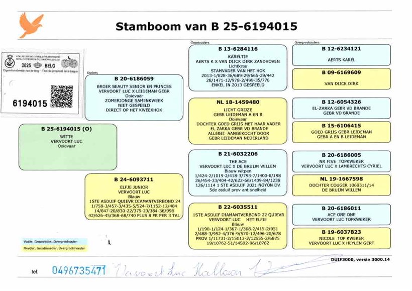 Brother "Beauty Senior" ("Kareltje" with daughter "Goed Grijs") X "Elfje Junior" daughter super pair "The Ace" 1. ace pigeon Diamant Verbond X "Het Elfje" 1.ace pigeon Diamant Verbond !