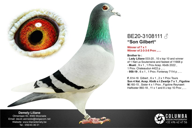Total inbreed ! "De Wittepenne" won 7 x 1. prize ("Gilbert" x "Sister 4 x 1.Provincial) X "Lady Liliane" 1. National La Souterraine vs. 11.668 pigeons daughter "Gilbert" x "Sister 4 x 1. Provincial"! 【全兄妹回血鸽。。。。7次冠军“白羽号”(“吉尔伯特”×4次省赛冠军)X 拉索特年国家赛11668羽冠军“丽丽安女郎”(“吉尔伯特”×4次省赛冠军)】