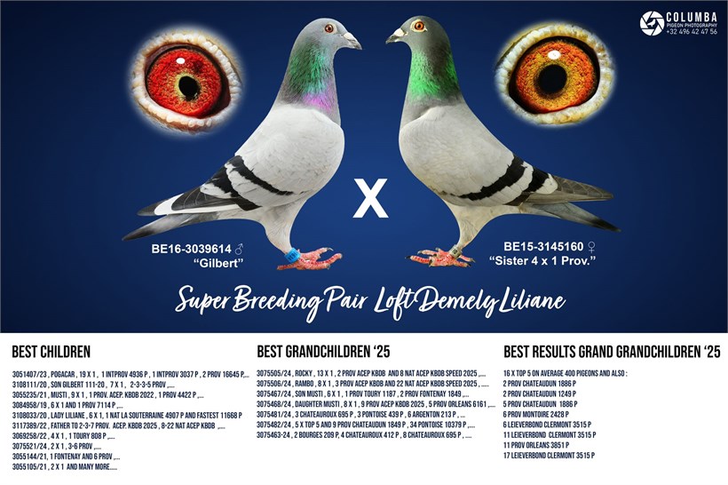 Total inbreed ! "De Wittepenne" won 7 x 1. prize ("Gilbert" x "Sister 4 x 1.Provincial) X "Lady Liliane" 1. National La Souterraine vs. 11.668 pigeons daughter "Gilbert" x "Sister 4 x 1. Provincial"!