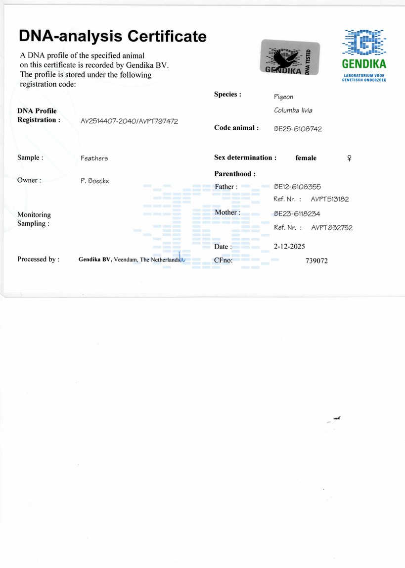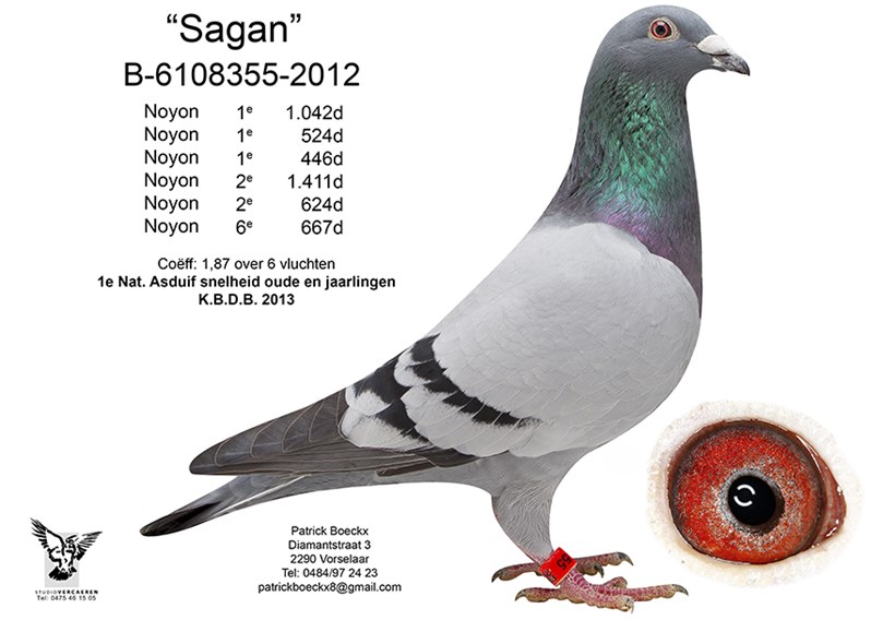 "New Sagan" father of "Iron Sagan" 1. National Ace Pigeon KBDB Allround 2024 & "Olympic Ace Pigeon" X daughter "Strik" son "Broer Goede Rode" with "40000" duivin Dirk Van Den Bulck !