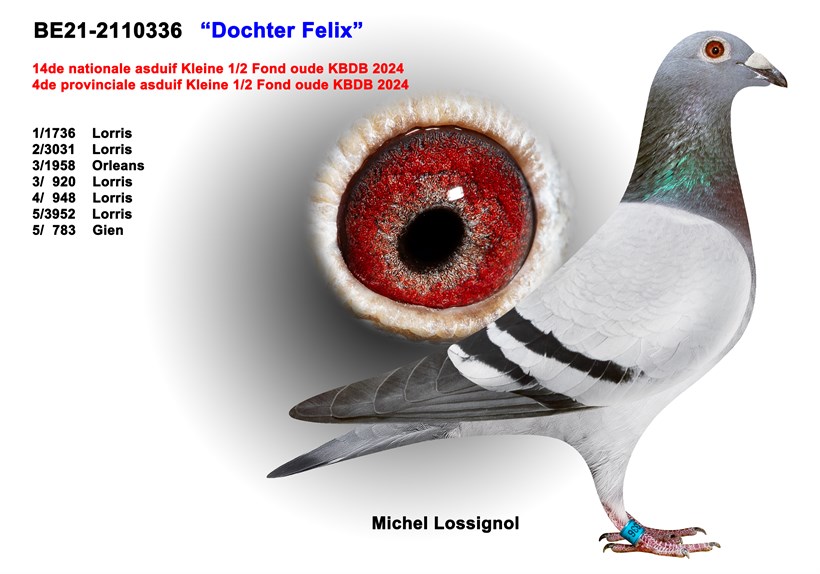 Top racer "De Bourges" 1. Provincial Bourges & 11. National Bourges vs. 7.270 pigeons X daughter "Felix" 5. National ace pigeon KBDB Small Middle Distance with "Rogerke" daughter "Apollo Junior"!