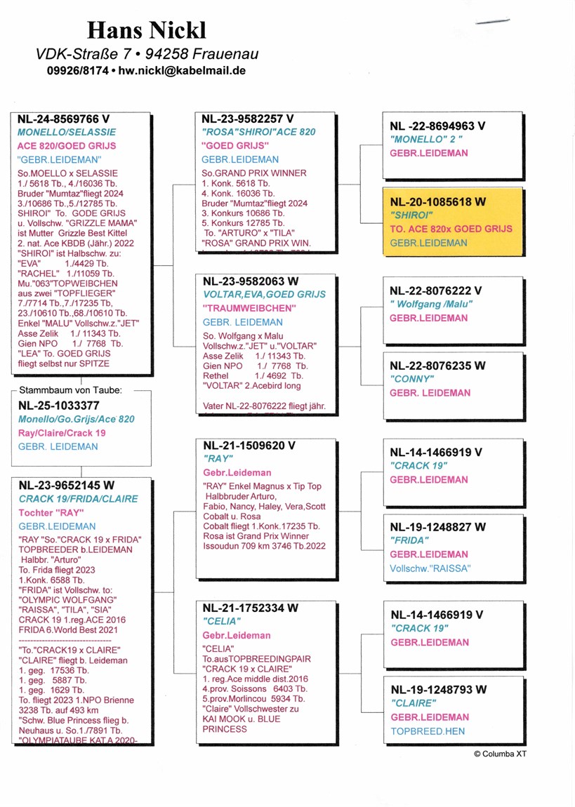 "Super 66" grandson "Monello 2" with "Shiroi" ("Ace 820" x "Goed Grijs") X double grand daughter "Crack 19" !