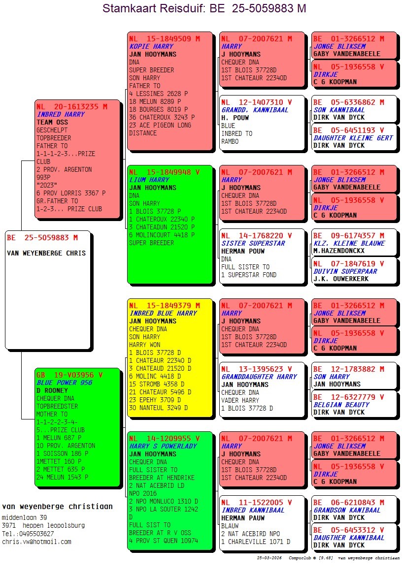 Züchter: Van Weyenberge Christiaan 克里斯蒂安. 范温伯格