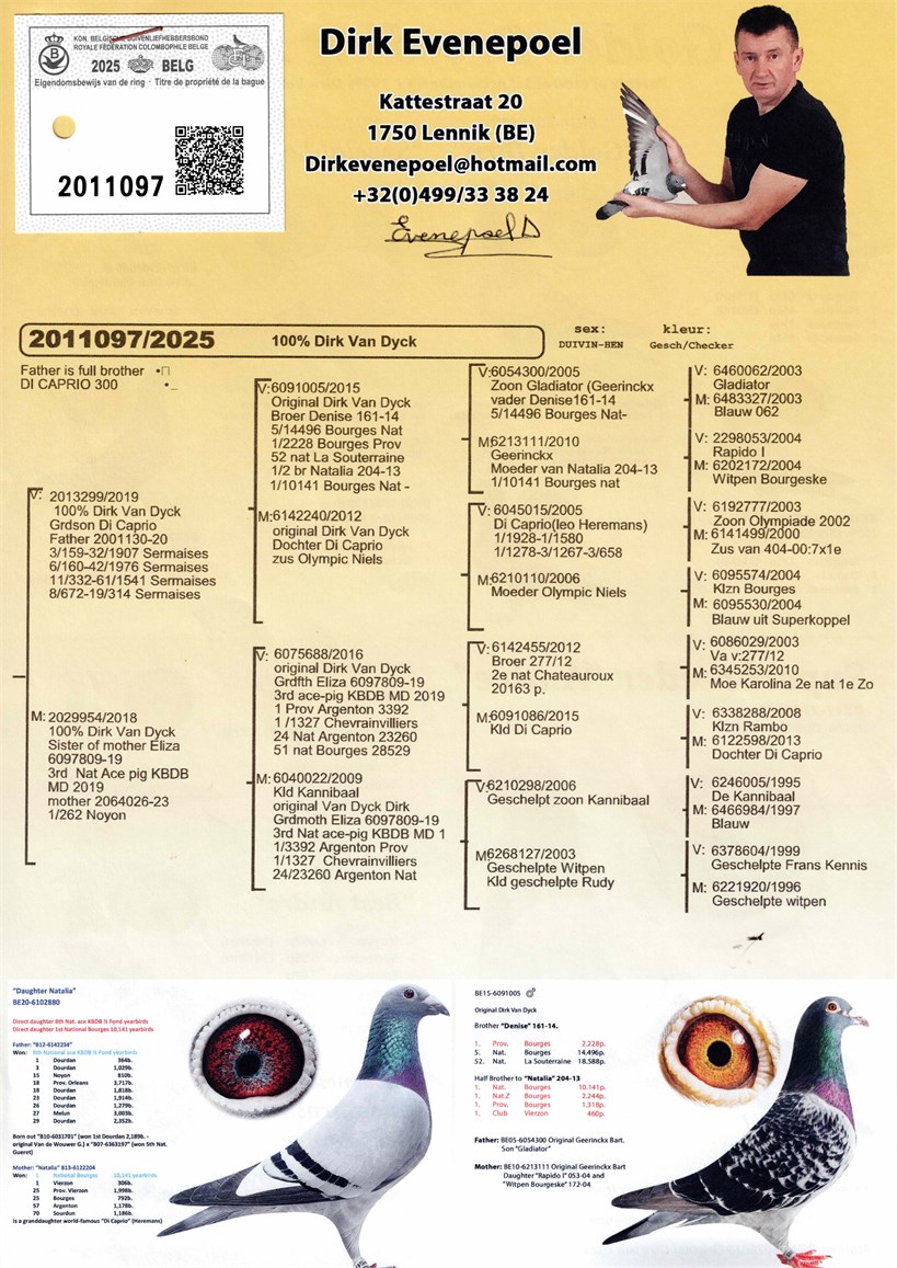 Grandson famous "Di Caprio" (Leo Heremans) X sister "Eliza" 3. National Ace Pigeon KBDB Middle Distance !