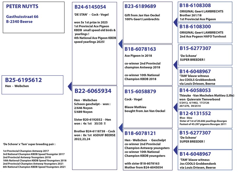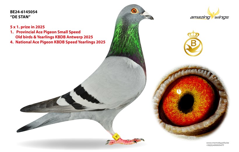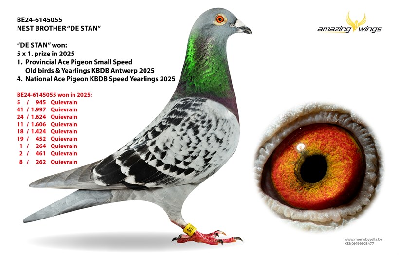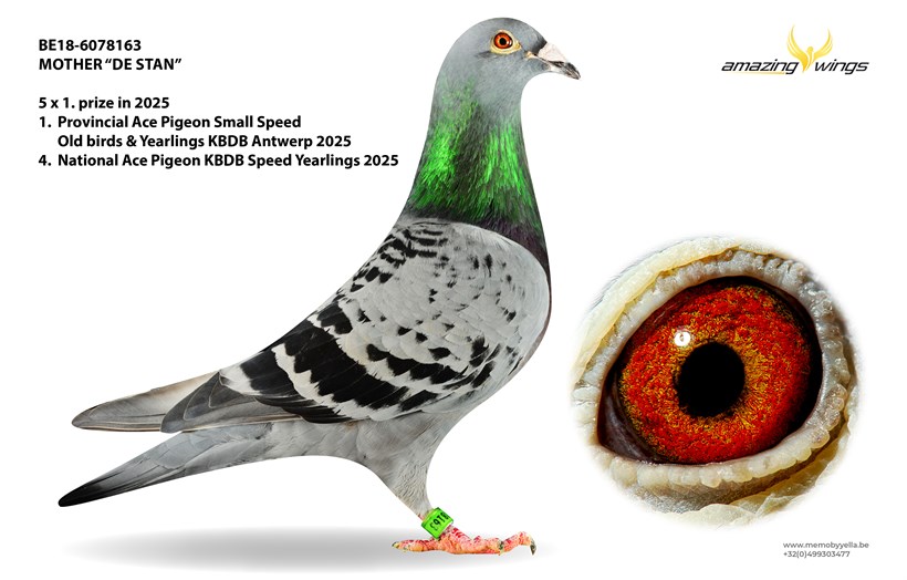 Family breeding ! Daughter "De Stan" won 5 x 1. prize in 2025 ! 4. National Ace pigeon KBDB Speed Yearlings & 1. Provincial Ace Pigeon KBDB Small Speed Antwerp !