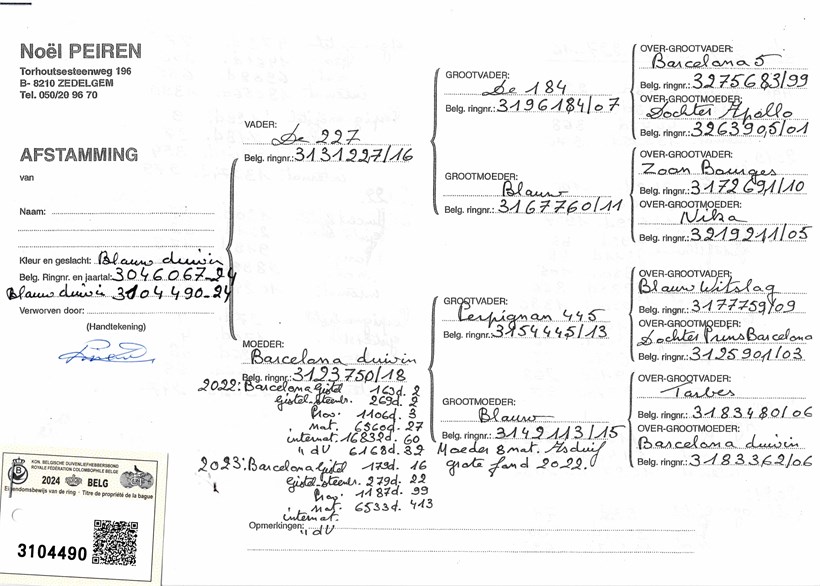 De   '227'   grandson famous "Barcelona 5" X super hen "Barcelona Duivin" grand daughter "Tarbes" x "Barcelona Duivin" !